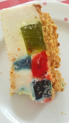 So basically this is not an actual cake but more like a pudding cake, a combination of cheesecake and pudding, which makes it deal for this summer! and plus the jello glass effect makes it look awesome! ๐