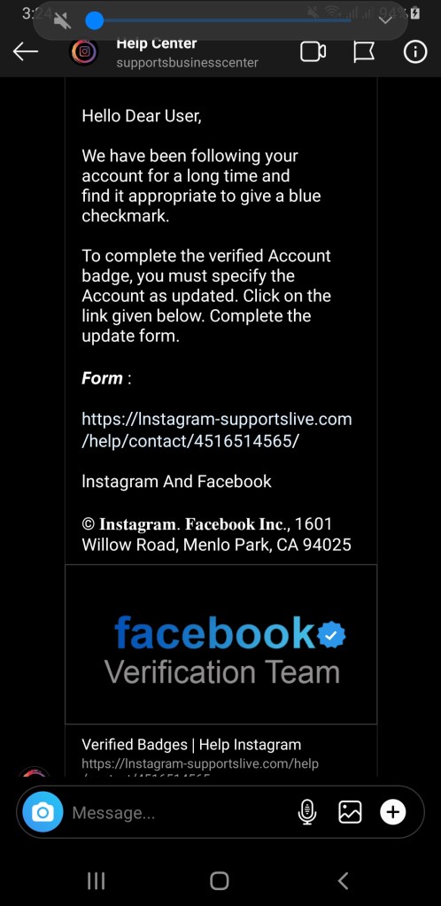 On 19th October morning I received a DM from a genuine-looking Instagram account called the ‘Instagram Help Centre’ Mind you, this was a very genuine looking account, and the hacker was pretending to be an Instagram team member, informing me my Instagram account was selected to get the blue tick verification!